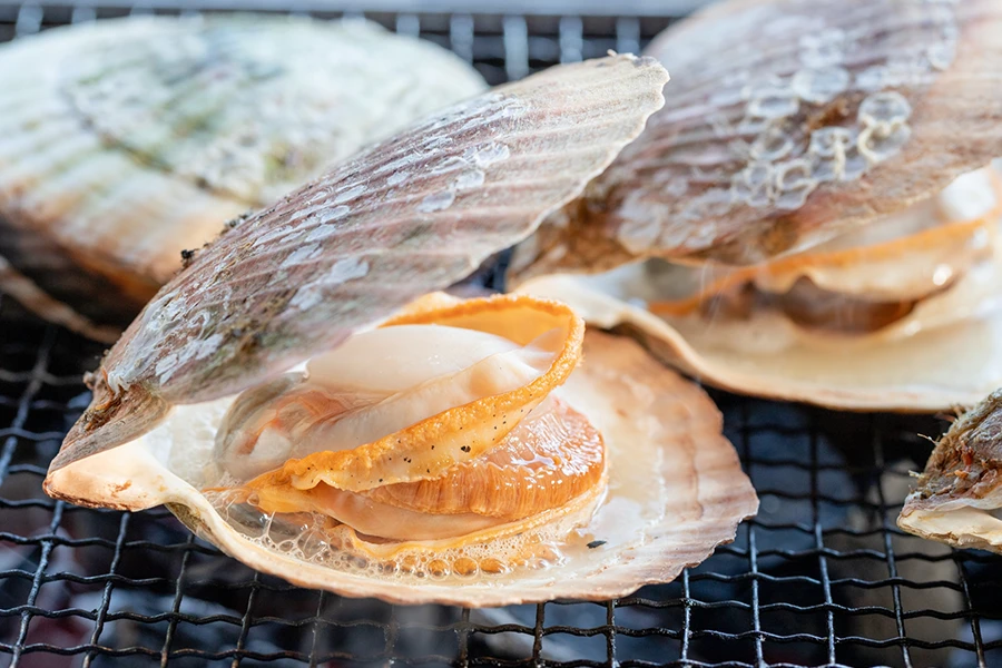 冷たいオホーツクの海で育った、肉厚で甘みのある活ホタテ。