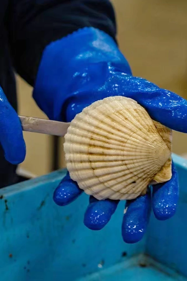 ホタテや牡蠣などの海産物を取り扱い、丁寧に作業を進めていきます。